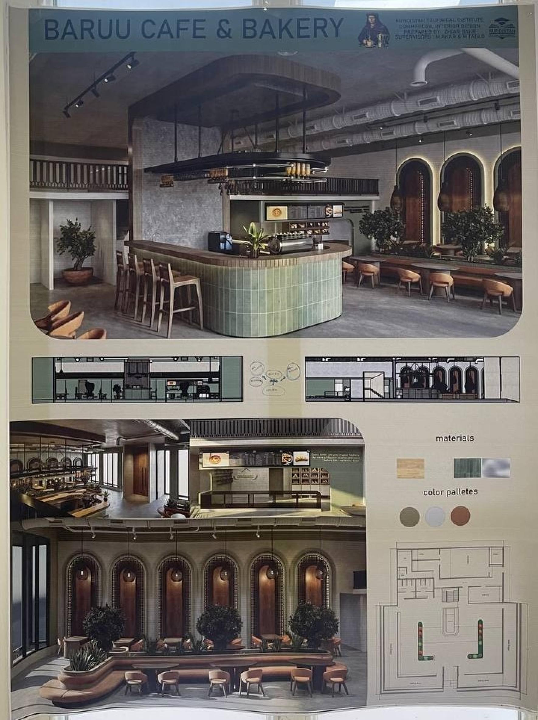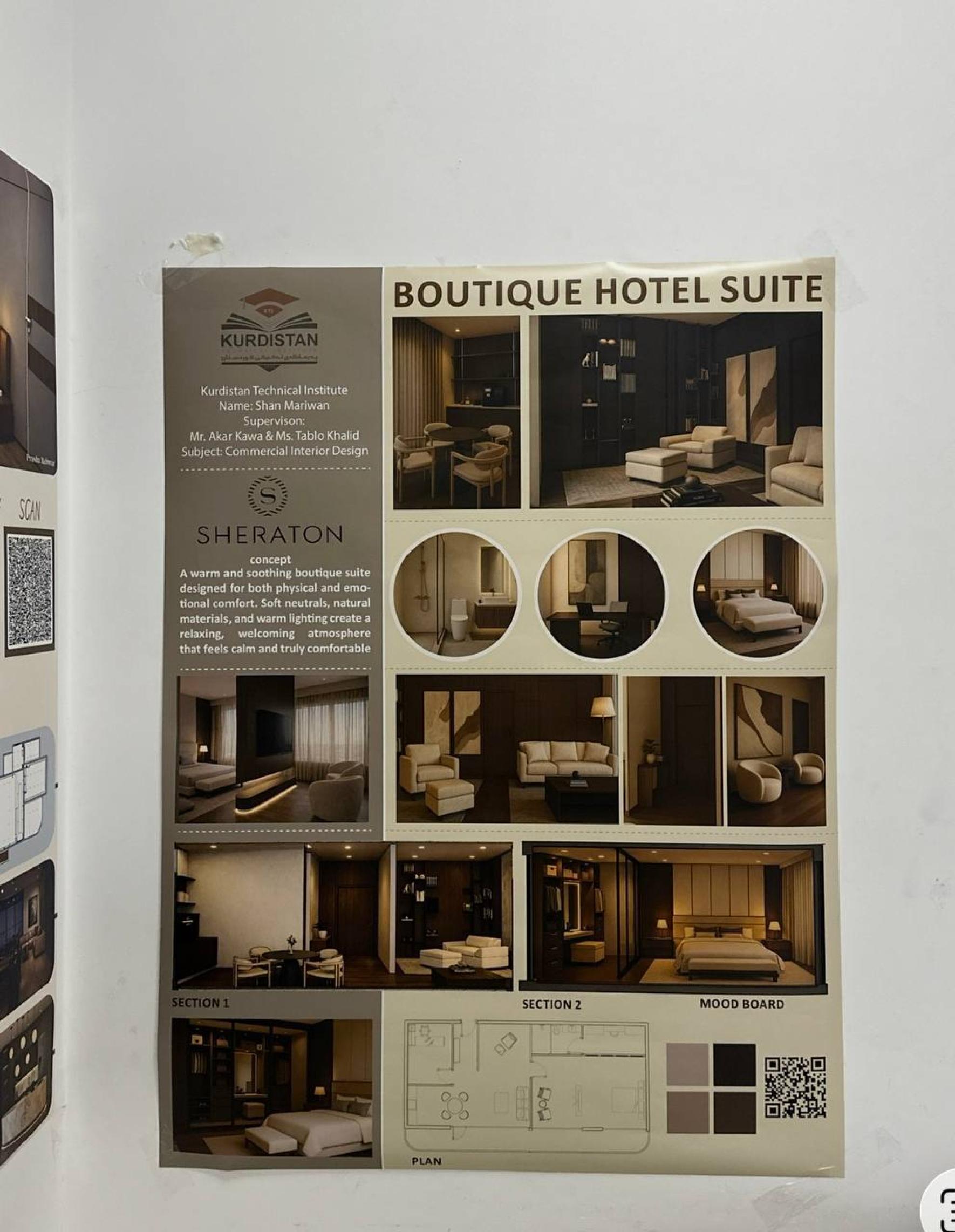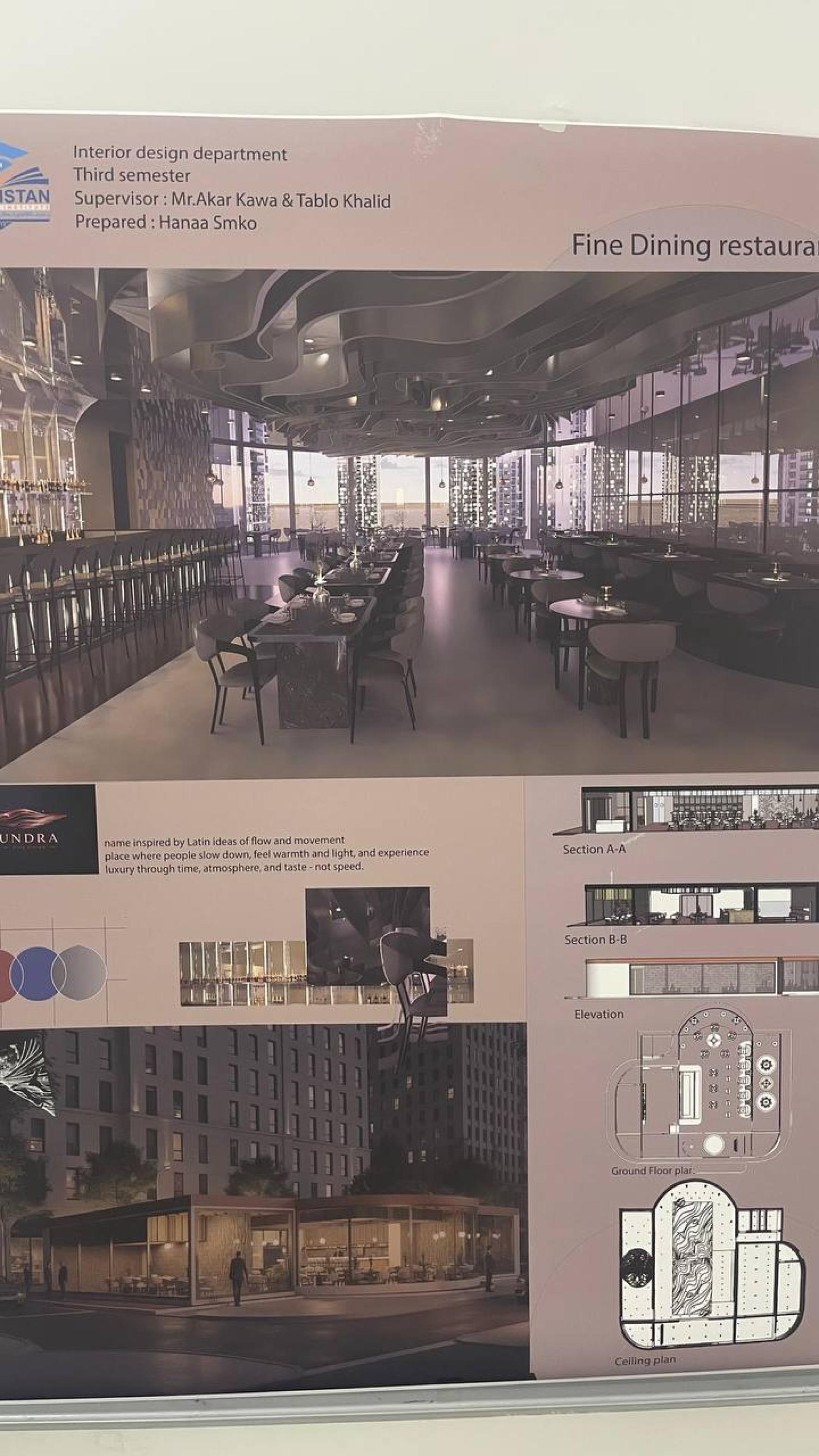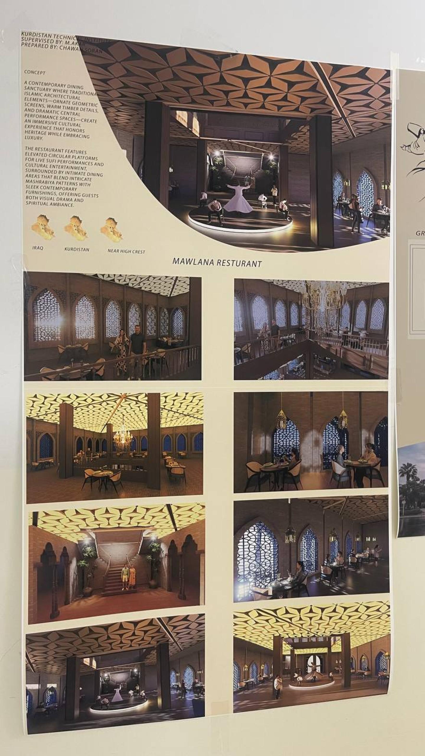 بەشێکی تر لە کاری فێرخوازانی سیمیستەری سێیەمی بەشی ئەندازیاری دیکۆر لە وانەی Commercial Interior Design