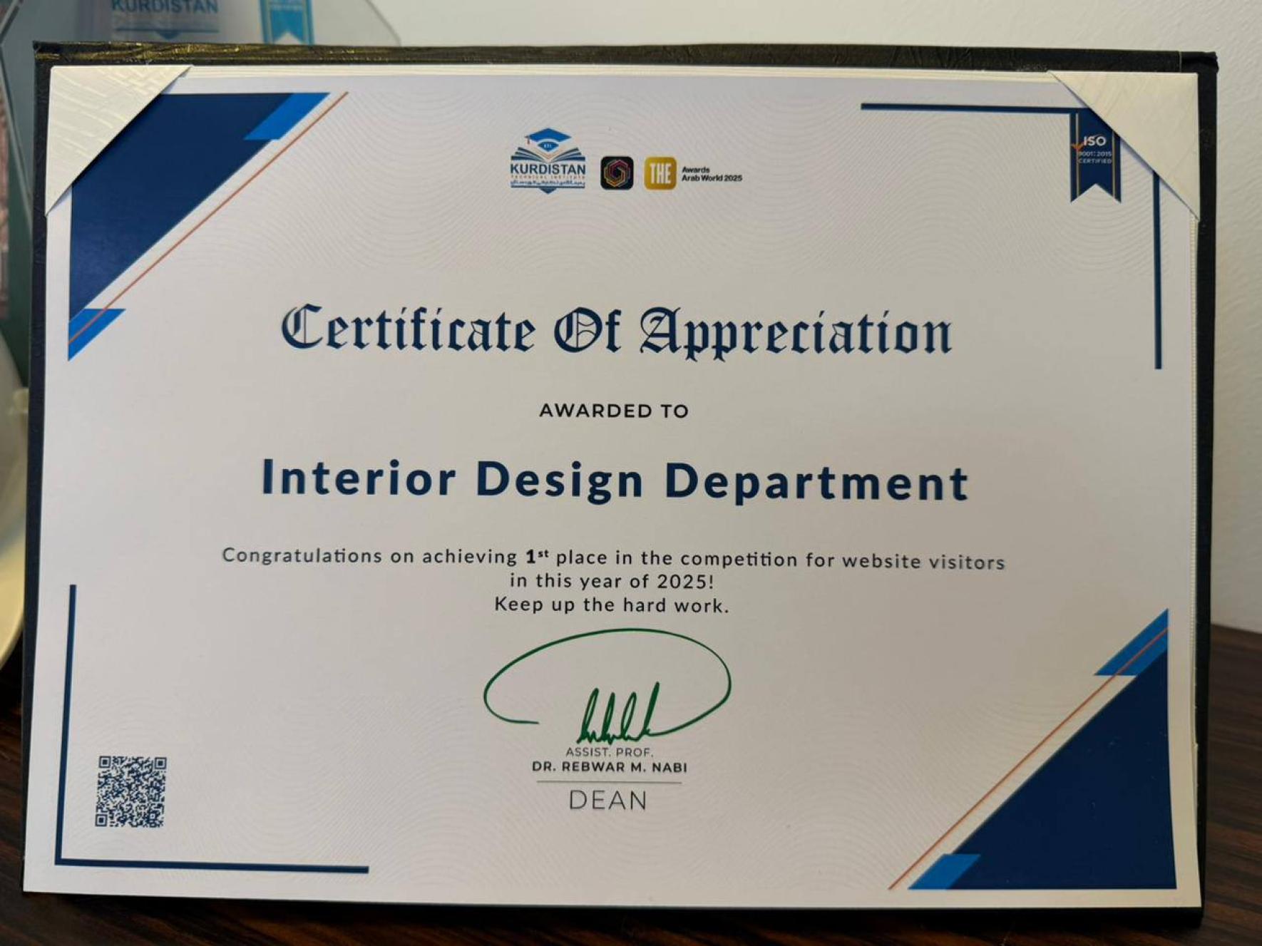 بە ناوی بەشی ئەندازیاری دیکۆری ناوەوە، سوپاسی سەرجەم مامۆستاو خوێندکارانی بەش دەکەین کە
