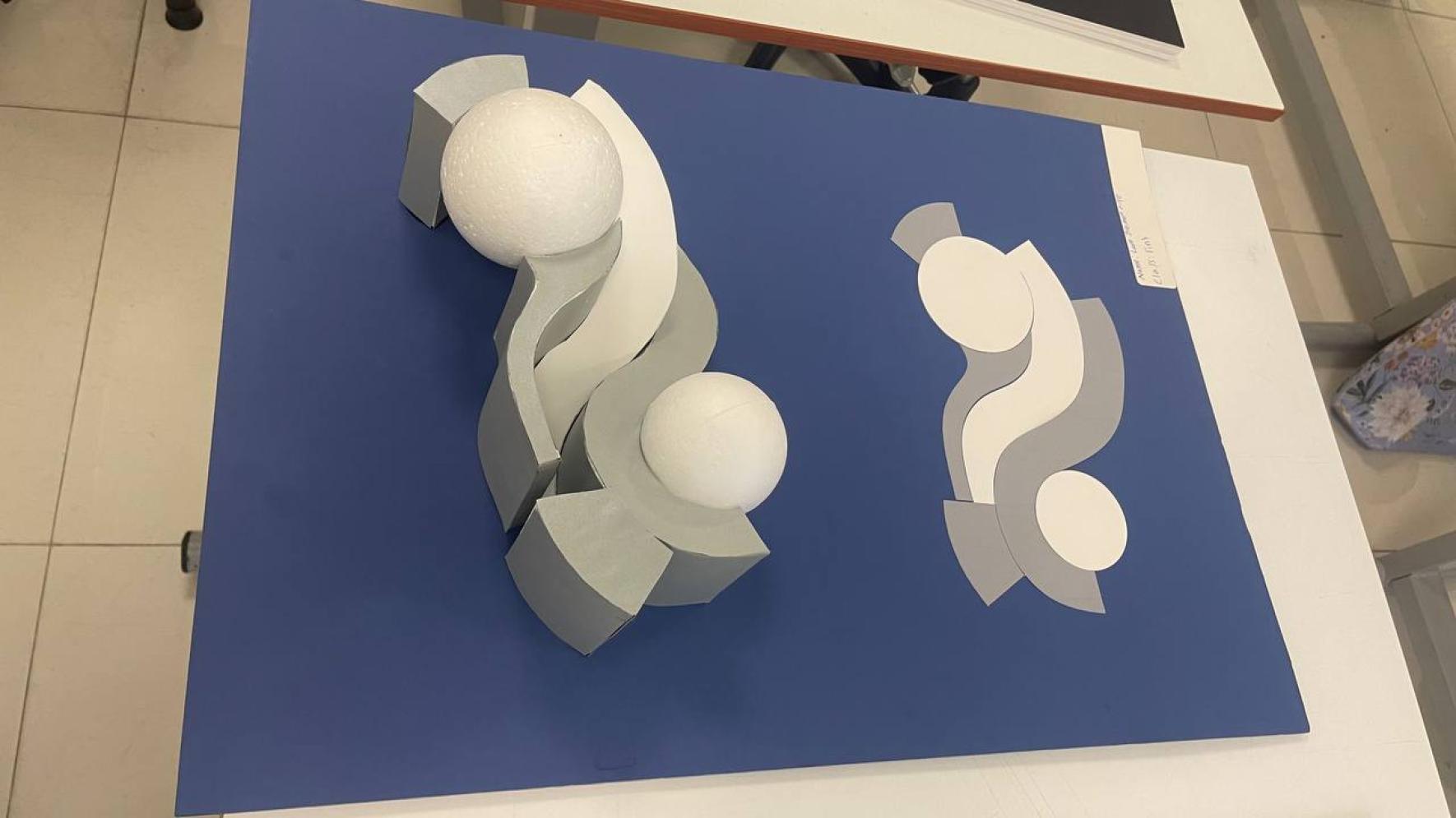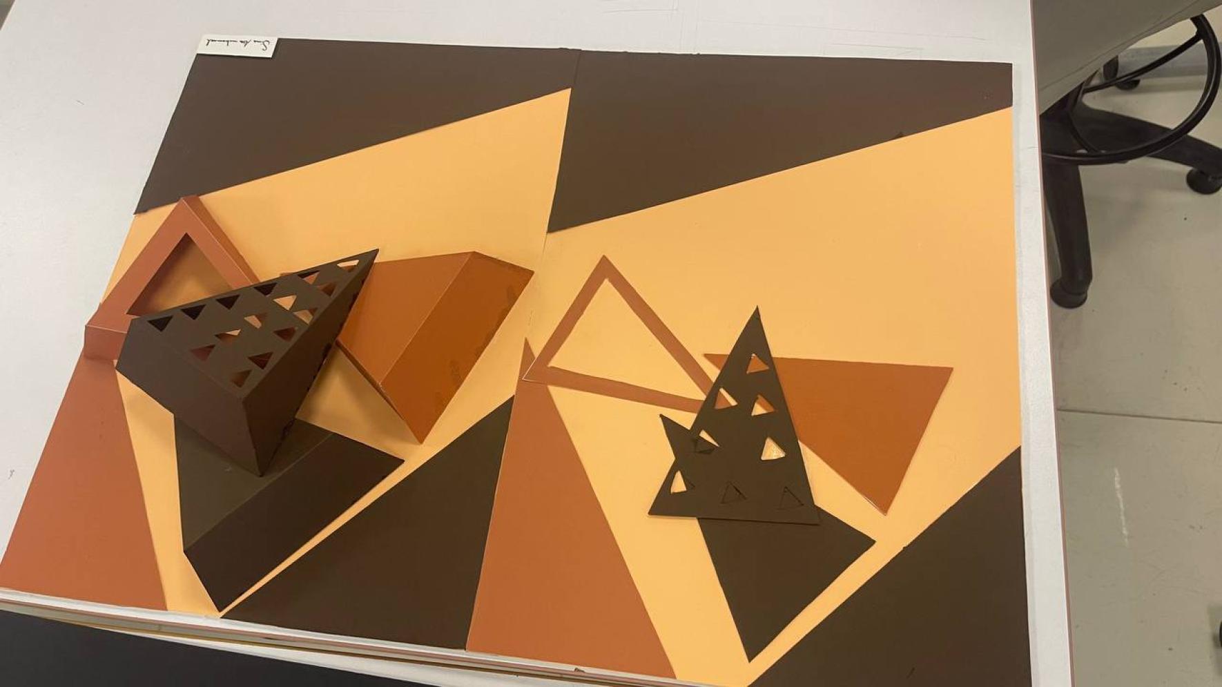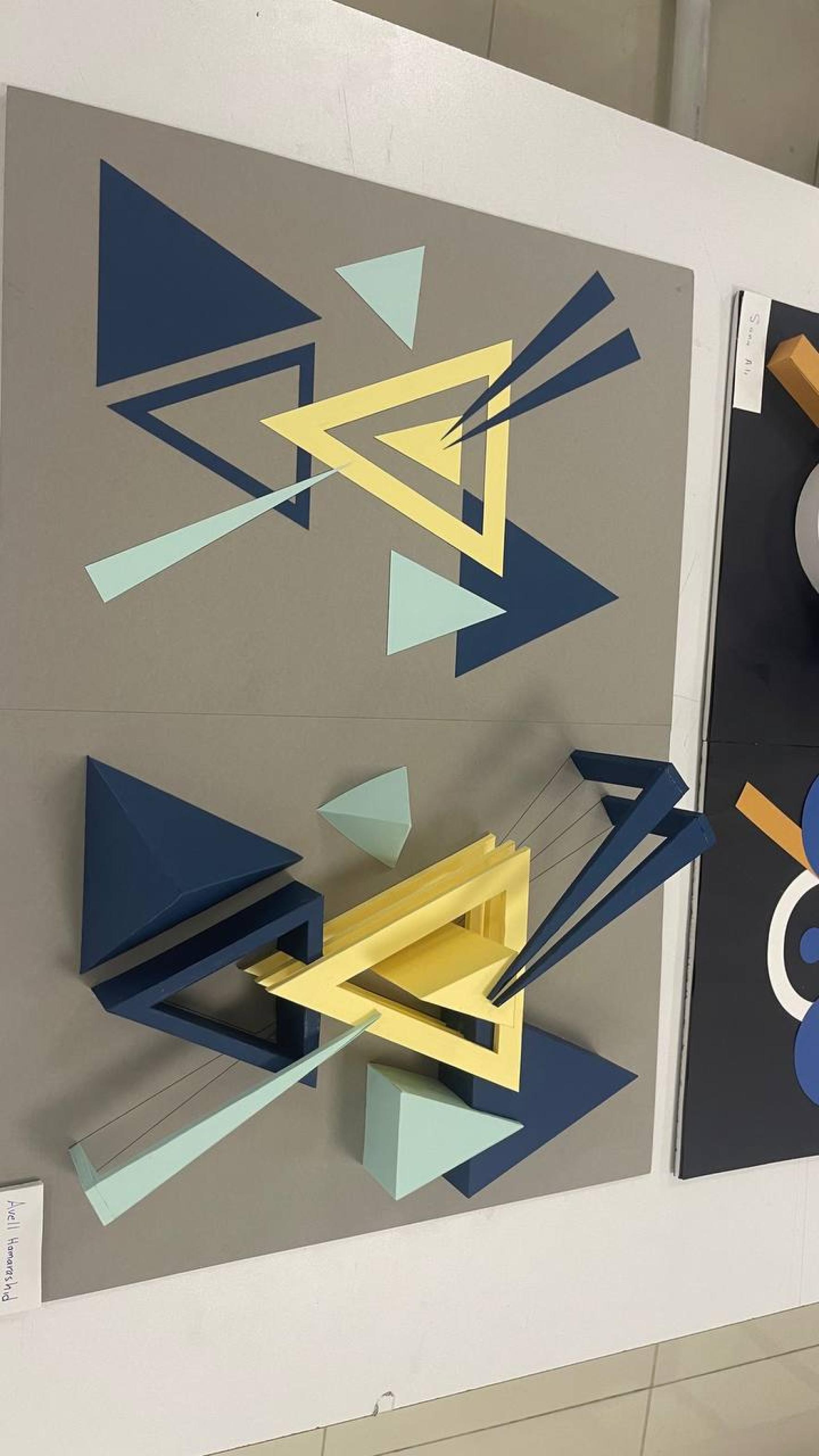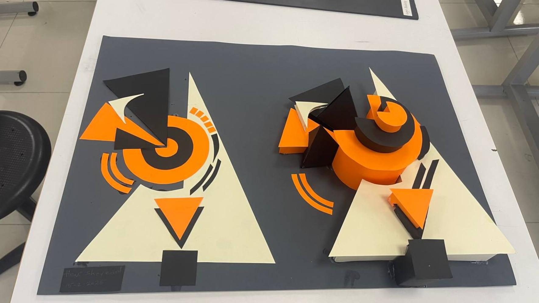 بەشێک لە کاری فێرخوازانی بەشی ئەندازیاری دیکۆری ناوەوە، سمستەری یەکەم لە وانەی پرنسپڵەکانی هونەر و دیزاینی ناوەوە، پرۆژەی کۆمپۆزشنی سێ دووری، بە سەرپەرشتی مامۆستایانی وانە م. لانە ڕۆشن، م. تابلۆ خالید و م.ڤینا شەوکەت.