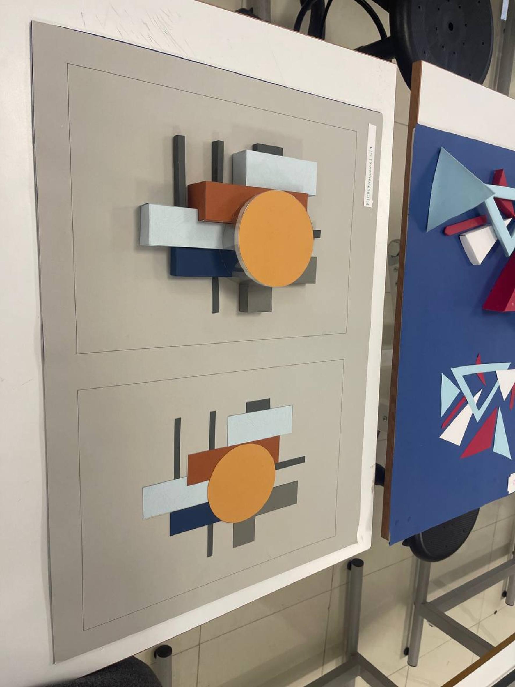 بەشێک لە کاری فێرخوازانی بەشی ئەندازیاری دیکۆری ناوەوە لە وانەی پرنسپڵەکانی هونەر و دیزاینی ناوەوە